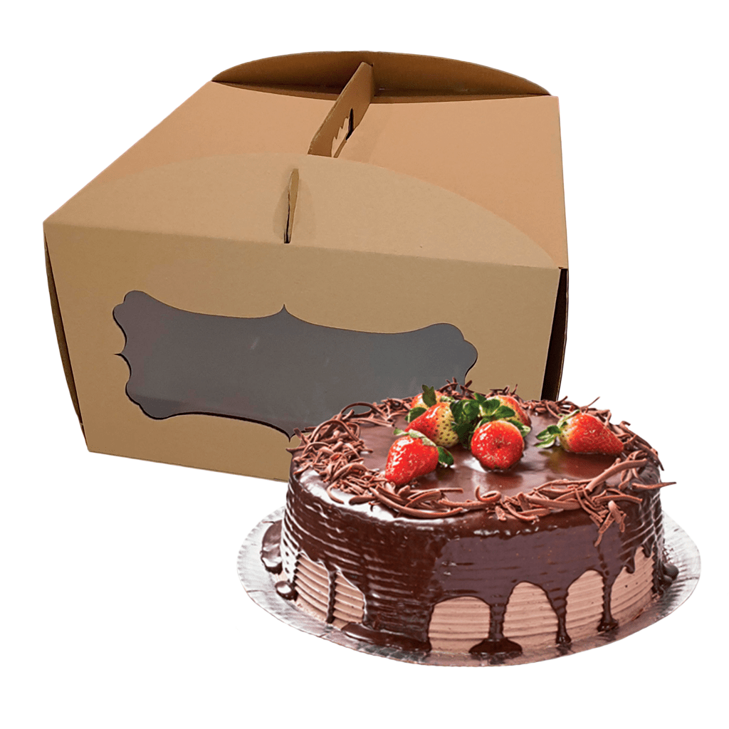 Caixa Cartão Pastelaria Kraft c/Pega c/Janela Vintage 34x34x20cm c/ Impressão