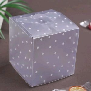 • Caixa Presente/Pastelaria Transparente com bolinhas 6x6x6cm Pack 5un. 3.00€ s/ IVA