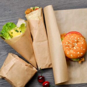 Este papel Anti-Gordura, impermeável, foi especialmente concebido para todos os tipos de alimentos com óleos, molhos ou gorduras. Especialmente indicado para restaurantes gourmet, frituras e Fast Food.