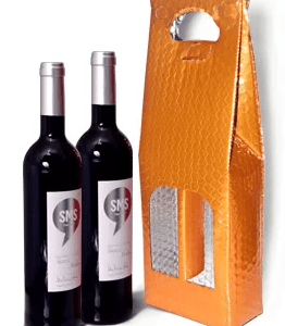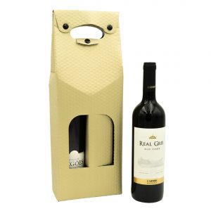 Um produto de qualidade, merece uma embalagem de requinte! Bolsa Premium 2 Garrafas 15x7.5x42cm c/ 3 Botões e c/ janela Cor Premium Dourada