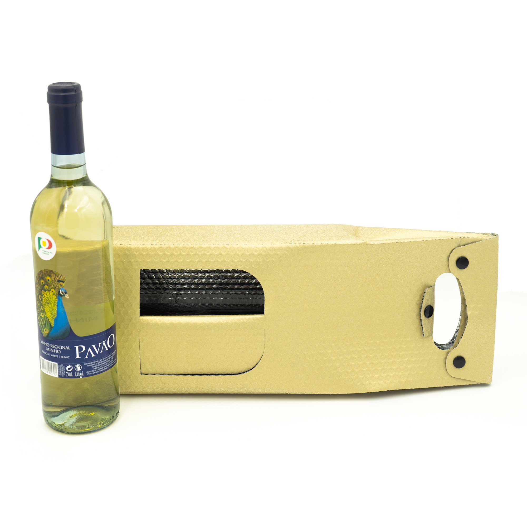 Bolsa Premium 2 Garrafas 15×7.5x42cm c/ 3 Botões e c/ janela Cor Premium Dourada