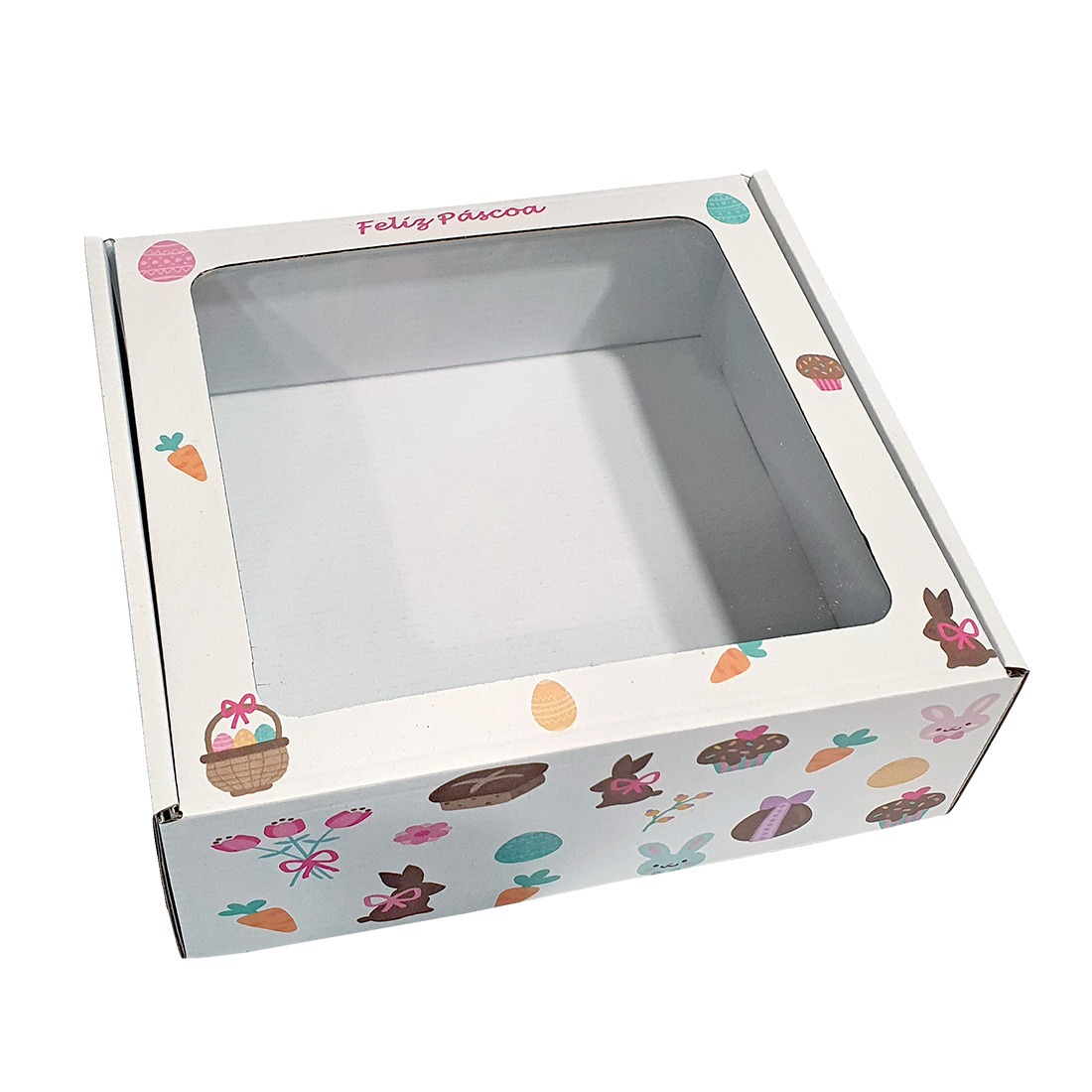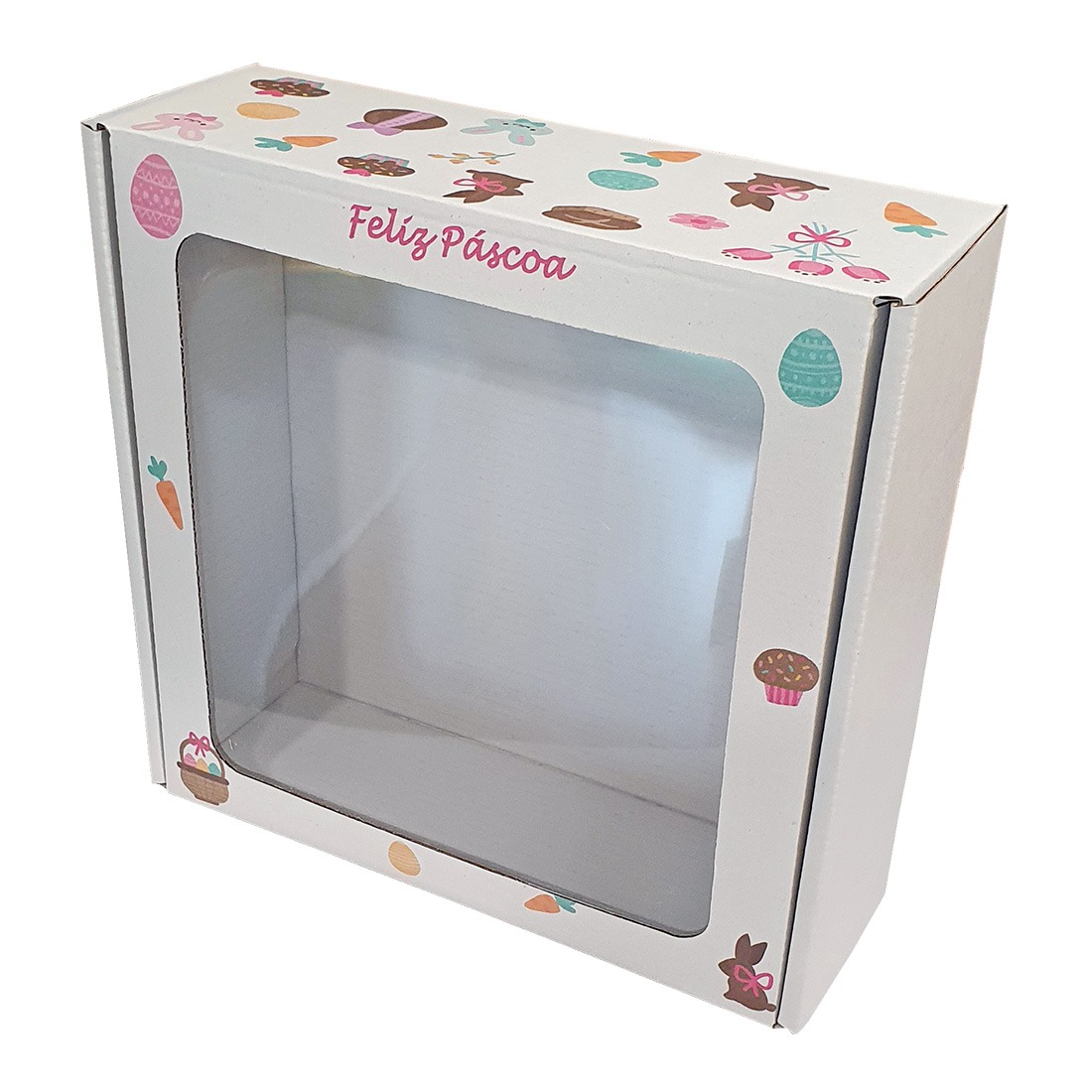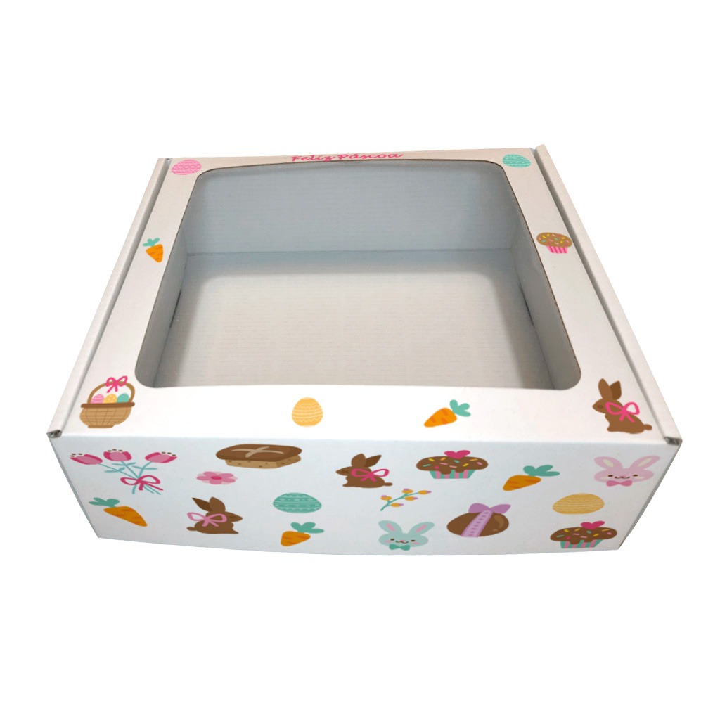 Caixa Cartão Presente Branca PÁSCOA 20x20x7cm c/Janela “Padrão”