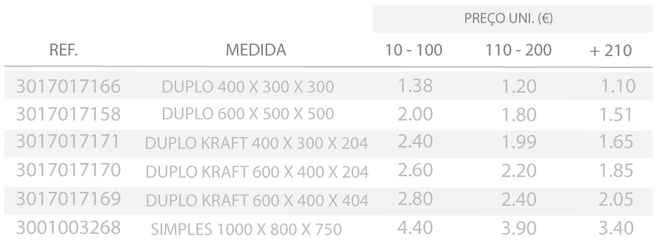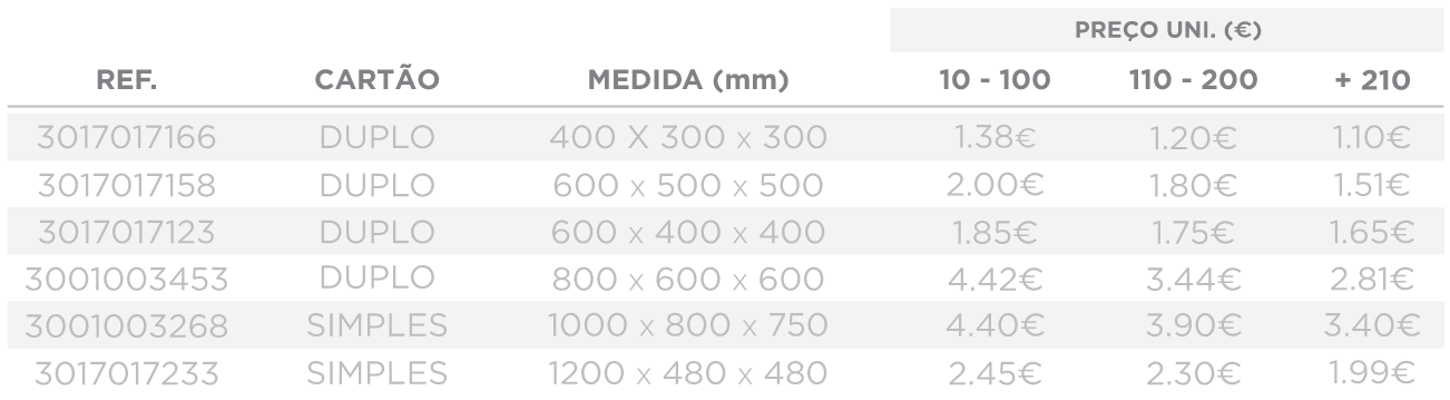 Dispomos de várias medidas standard, em cartão simples ou duplo.