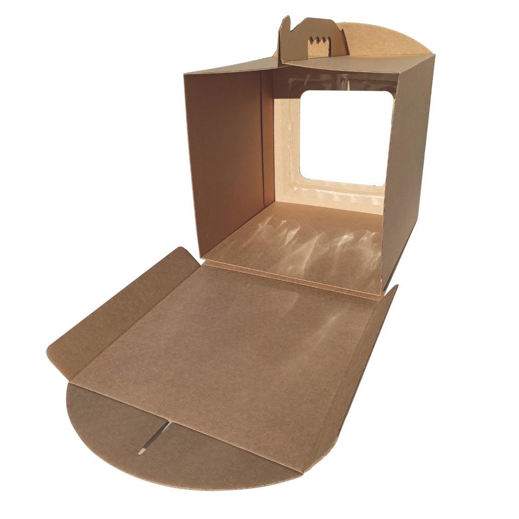 Caixa Cartão Bolos/Pastelaria Kraft c/Pega c/Janela Quadrada