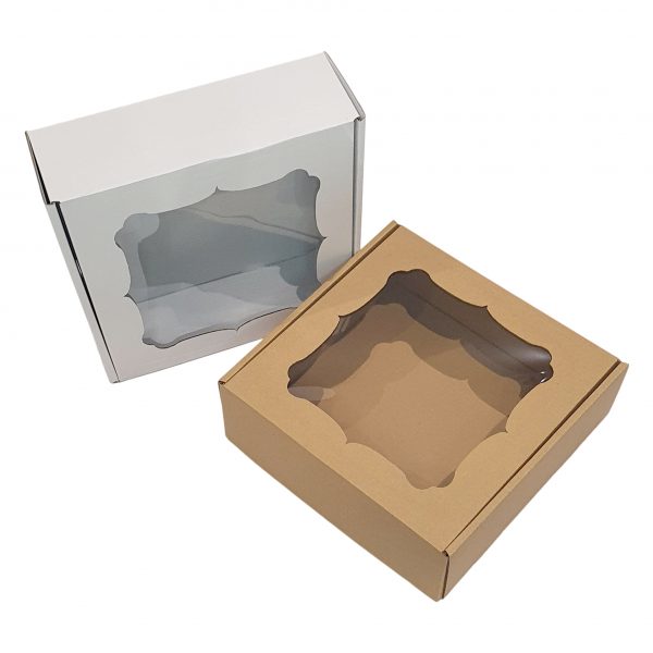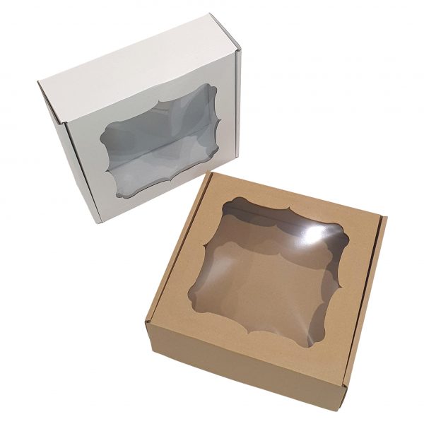 Início PASTELARIA Caixa Cartão Presente / Envio Postal c/Janela Vintage – 20x20x7cm