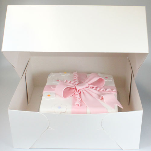 Caixas de cartolina ideais para transporte e proteção de bolos.