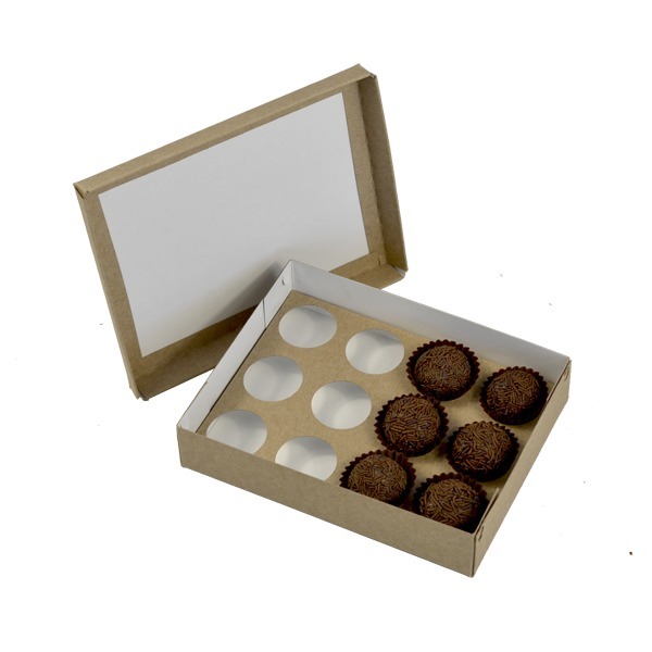 Caixa Cartolina Kraft 6 Brigadeiros c/Tampa Separada 13x9x4cm