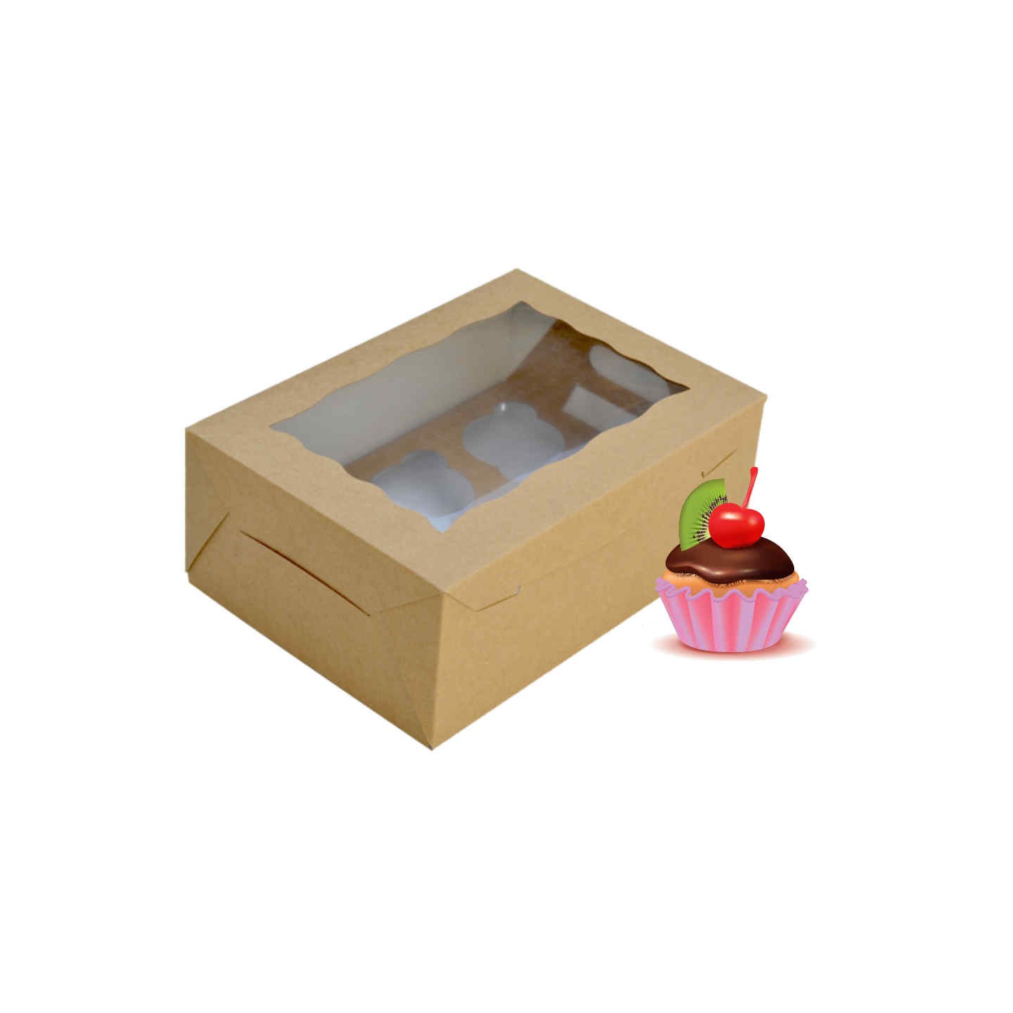 Caixa Cartolina Kraft p/6 Cupcakes 25x18x10cm