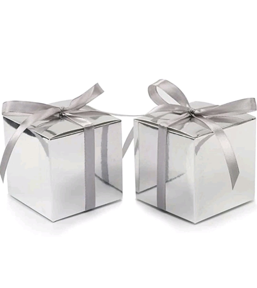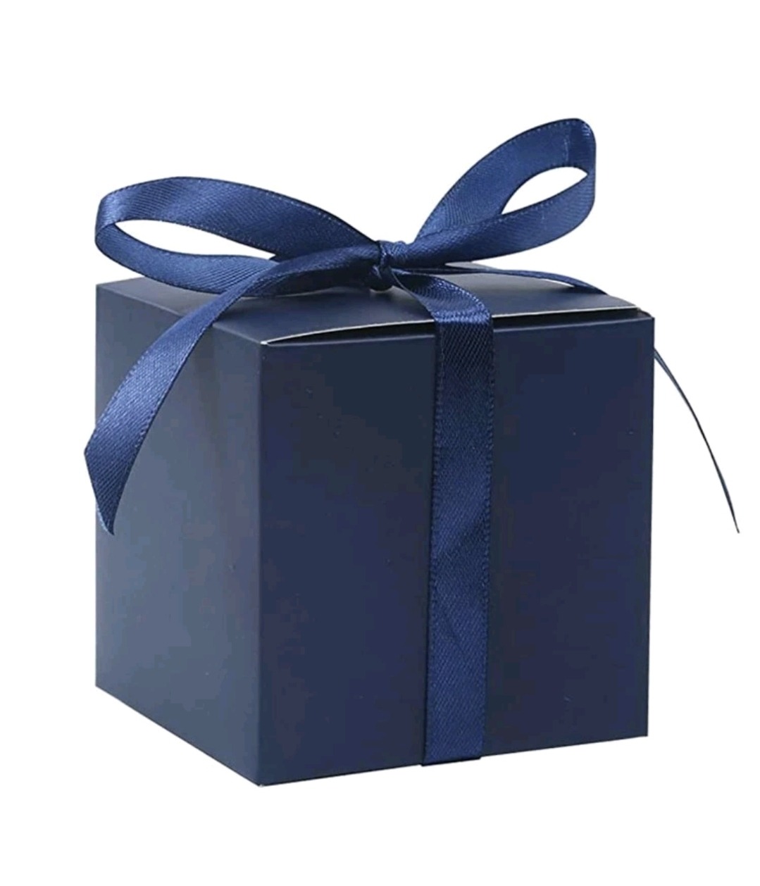 Caixa Cartolina Presente Dourada/Prateada/Azul c/Fita 7.5×7.5×7.5cm – Pack 10