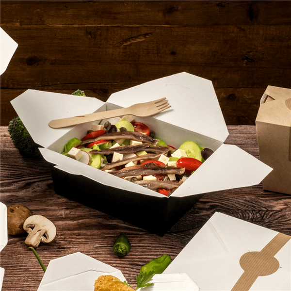 Caixa Cartolina Preta para Take Away que mantém a comida quentinha e pode ir ao micro-ondas!
