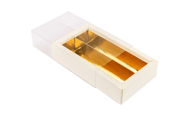 Caixa para Bombons Cartão Branca + Interior Dourado 14,5×7,5×3,5cm – Pastelaria