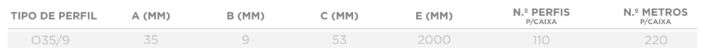Perfis ecológicos feitos a partir de 85% a 100% produto reciclado.