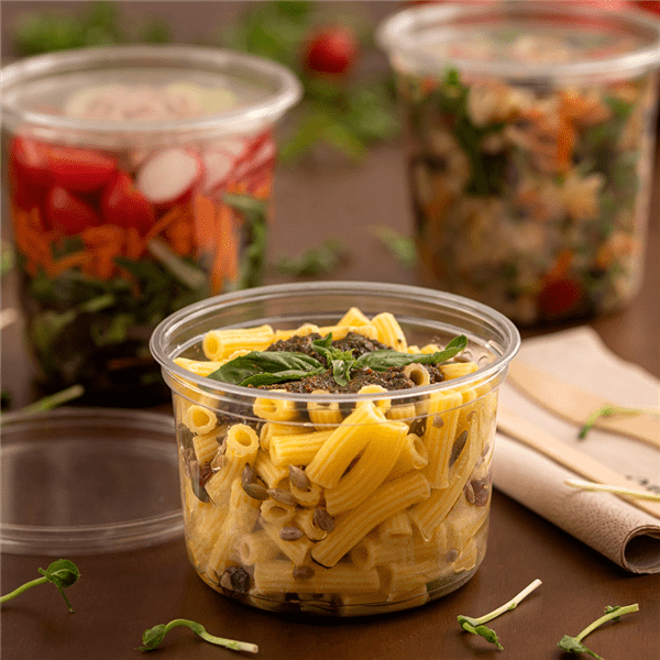 Caixa Plástica Reutilizável RPET c/Tampa p/ Sopa e Outr. Alim. Coz. ou Crú Pack 32 Unidades – Take Away – Várias Capacidades