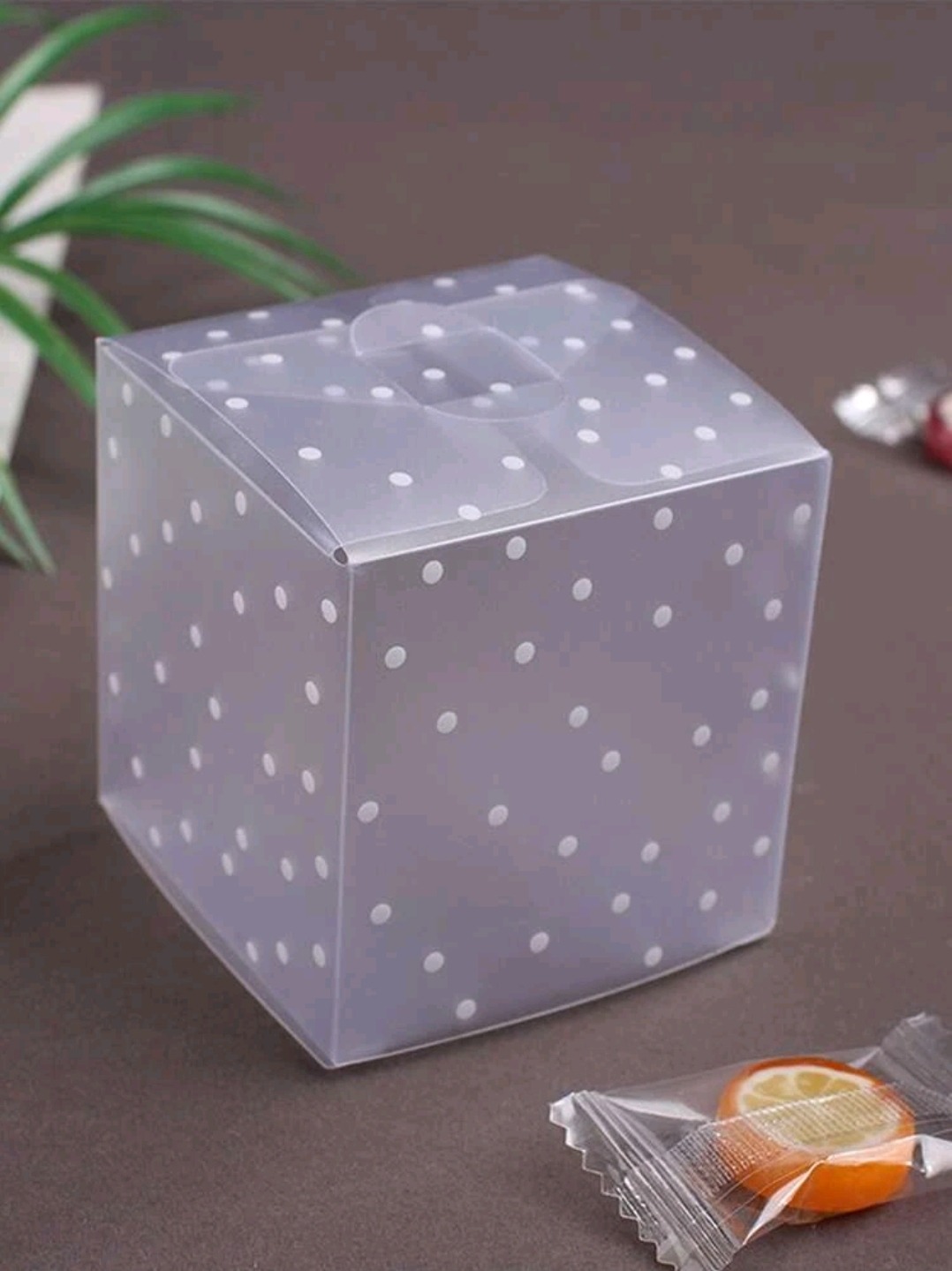 Início Caixa Presente/Pastelaria Transparente com bolinhas 6x6x6cm Pack 5un.