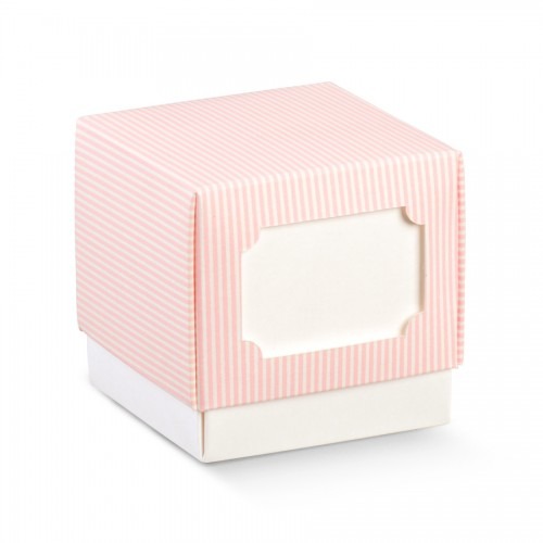 Início Caixa Presente Rosa e Branco 70x70x70mm