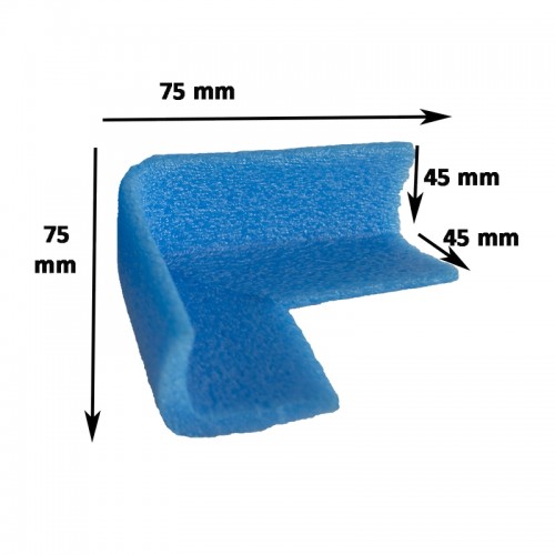 Cantos em espuma polietileno de perfil L45, com 45x45mm. Ideais para proteção dos cantos de móveis, eletrodomésticos e materiais sanitários. Adapta-se à espessura dos objetos, é muito fácil de instalar e retirar.