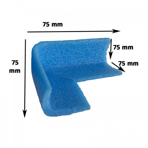 Cantos em espuma polietileno de perfil L75, com 75x75mm. Ideais para proteção dos cantos de móveis, eletrodomésticos e materiais sanitários. Adapta-se à espessura dos objetos, é muito fácil de instalar e retirar.