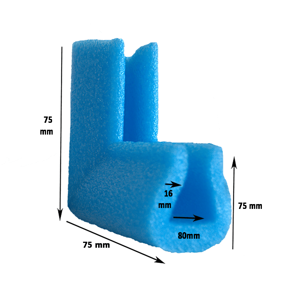Cantos em espuma polietileno de perfil U80 com 8cm no interior. Ideais para proteção dos cantos de molduras, portas, quadros, caixilharias de alumínio e tampos de secretárias. Adapta-se à espessura dos objetos, é muito fácil de instalar e retirar.