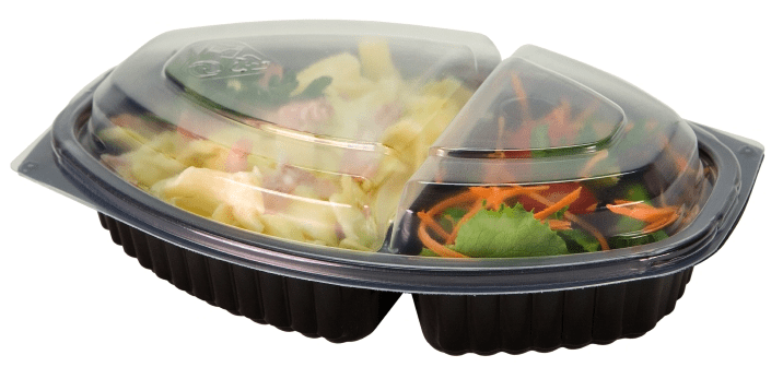 Início TAKE AWAY E DESCARTÁVEIS Embalagens p/ ALIMENTOS FOOD Caixa Plástica Reutilizável para Take Away Oval c/ 2 divisórias