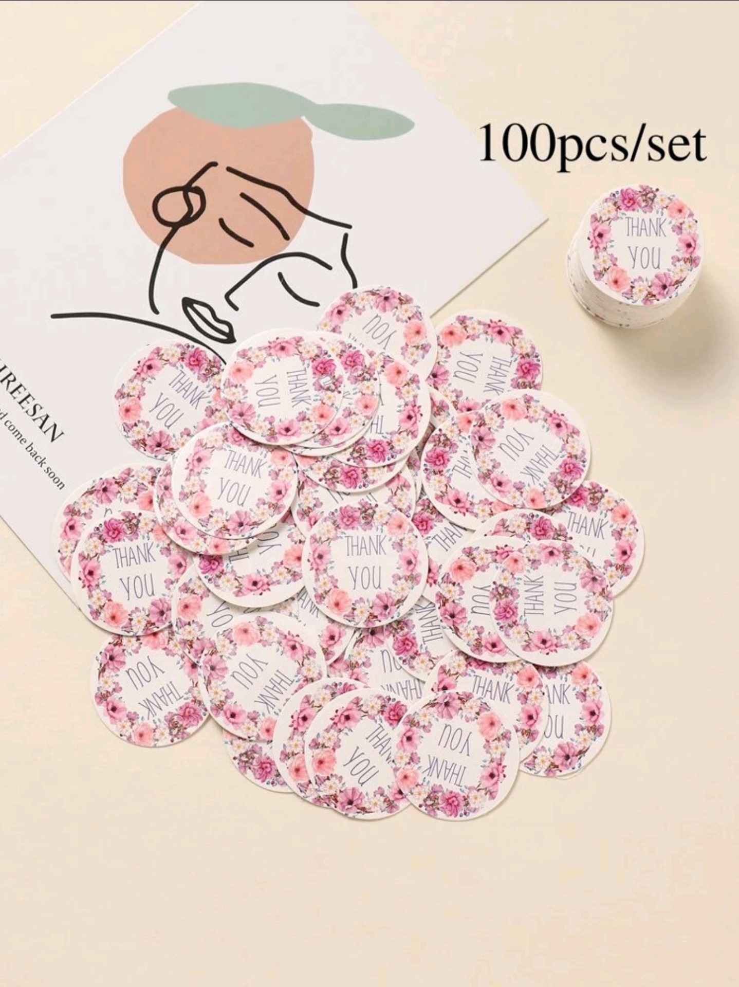 Etiqueta Cartão Redonda “Thank You” 3cm Rosa – Pack 100 uni.