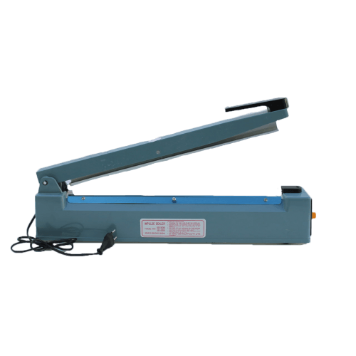 Seladora de sacos de mesa com corte, de fácil utilização, que permite fechar e selar sacos.