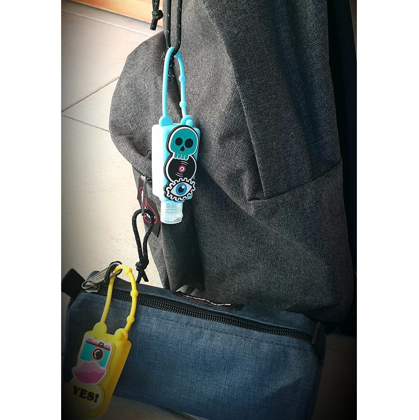 Pendurado na mochila ou na bolsa escolar, este álcool gel é espectacular para desinfectar as mãos dos mais pequenos!