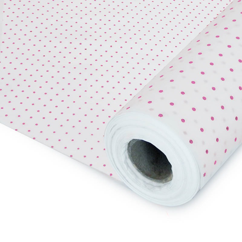 Rolo Papel Seda c/impressão Bolinhas Rosa 62cmx100mtrs