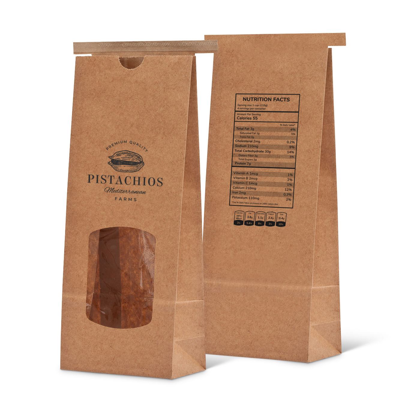 Saco Stand Up Papel Kraft c/Clip e Janela c/Impressão 1 Face (Alimentos, especiarias, pastelaria, outros)
